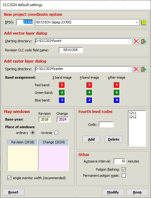 Default settings dialog